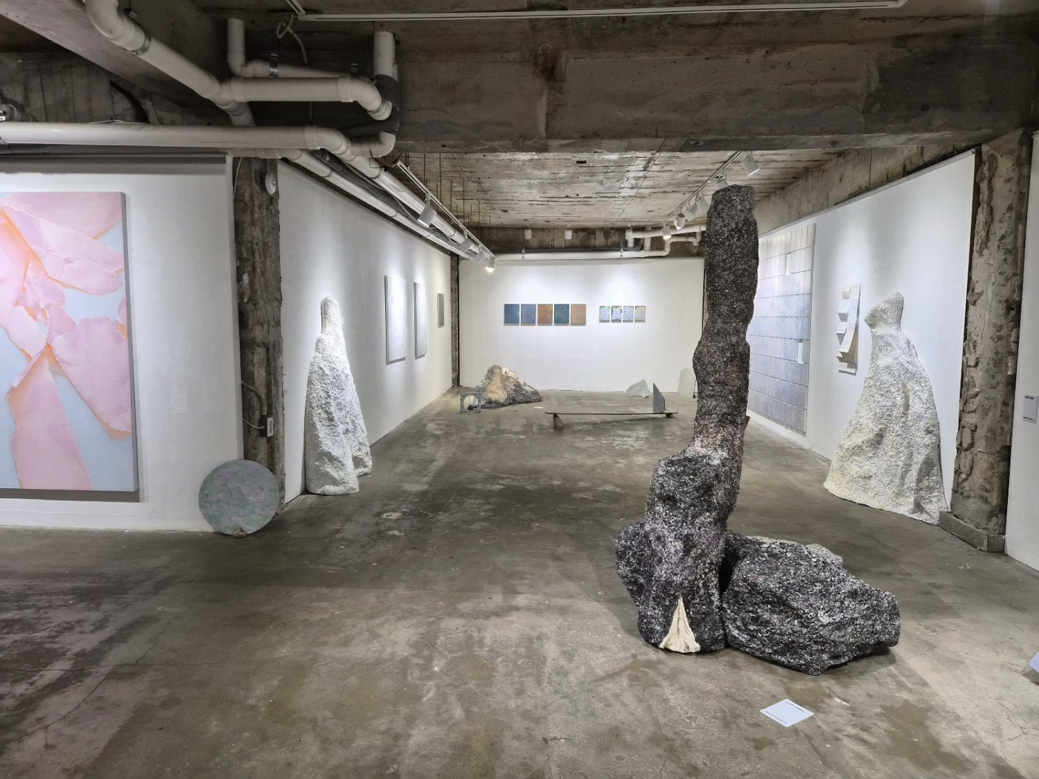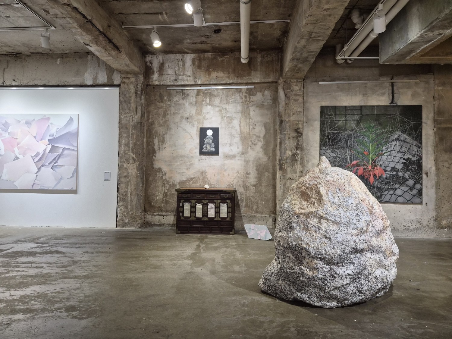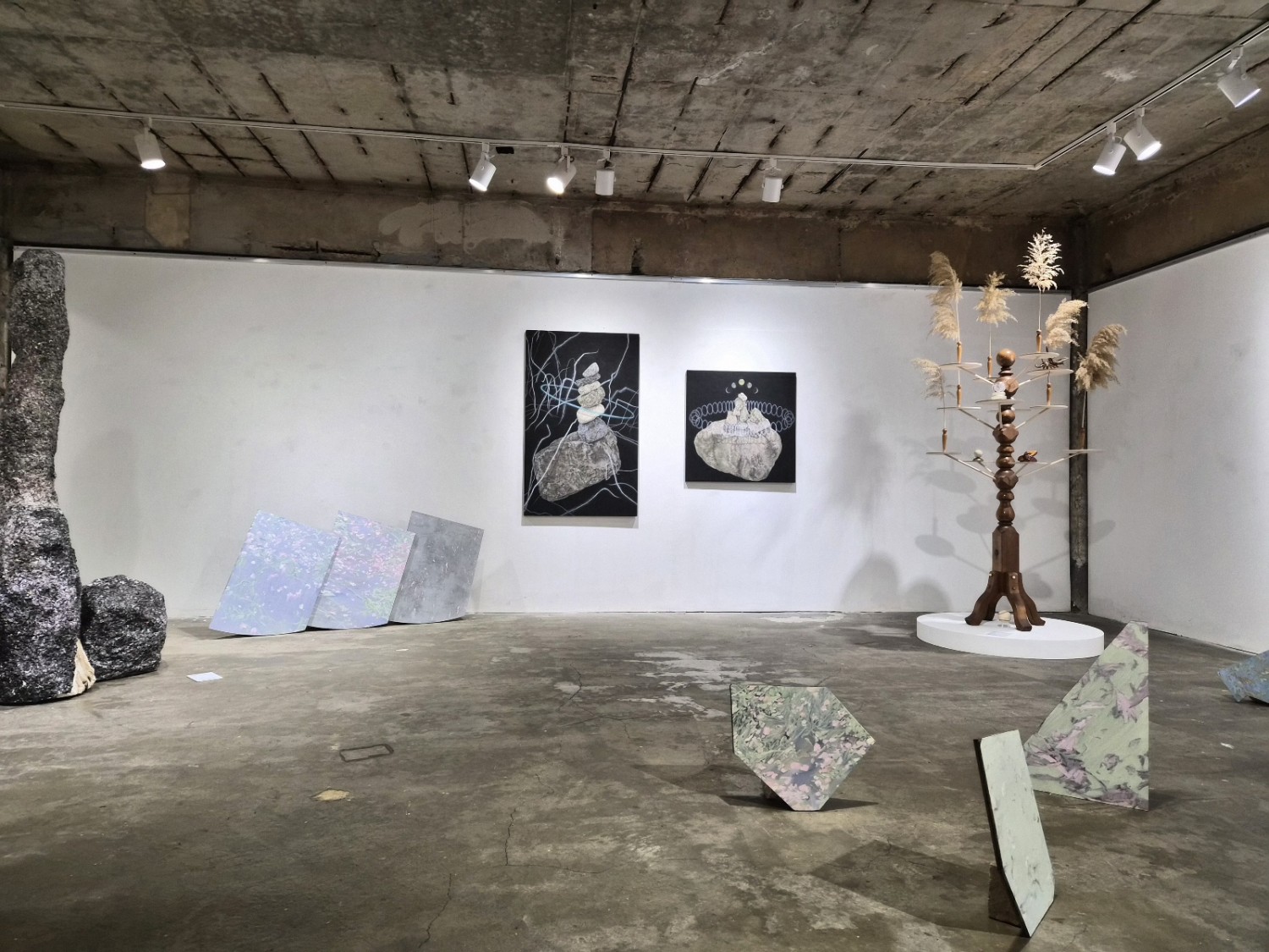 ○이번 전시에 참여한 작가들이 각자의 방식으로 이 ‘스탄차’를 시각화 하는데, 박해선은 사라져가는 사물의 파편과 사용을 다한 조각들을 다시 화면 위로 불러들이며, 사라질 것과 남겨질 것 사이의 행간을 포착한다. 손승범은 기념비적인 대상과 이름조차 없는 사소한 사물을 한 화면에 병치함으로써, 무엇이 기억되고 무엇이 잊히는지에 대한 질문을 던진다. 이은지는 아직 이름 붙지 못한 형상과 단정할 수 없는 ‘덩어리’를 통해, 의미가 고정되기 전의 유동적인 상태를 탐색한다. 차현욱은 과거와 현재, 예지된 미래의 장면을 하나의 화면에 겹쳐 놓는 회화를 통해, 시간의 균열과 그 사이에 놓인 행간을 드러낸다.