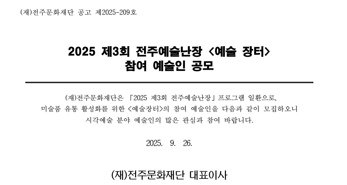 | 공모명 | 2025 제3회 전주예술난장 "예술 장터" 참여예술인 모집 |