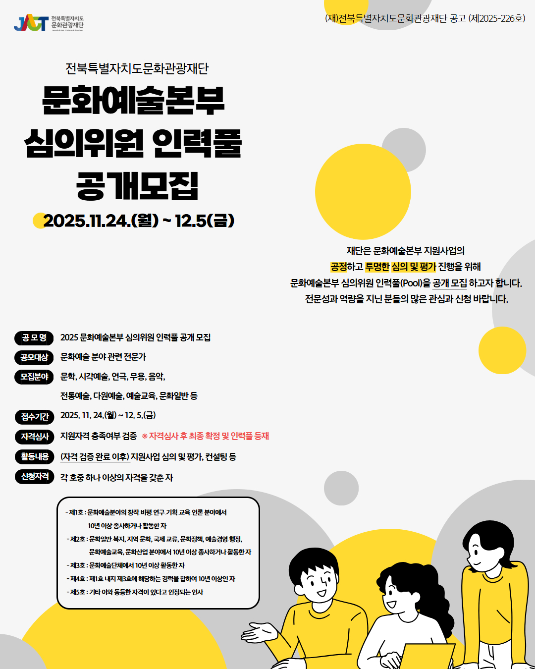 2025 문화예술본부 심의위원 인력풀 공개모집