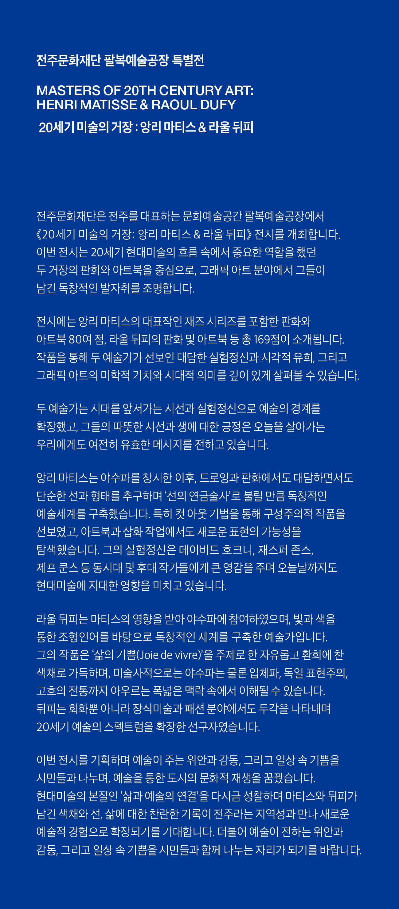 | 전시명 | 20세기 미술의 거장 : 앙리 마티스 &라울 뒤피 |