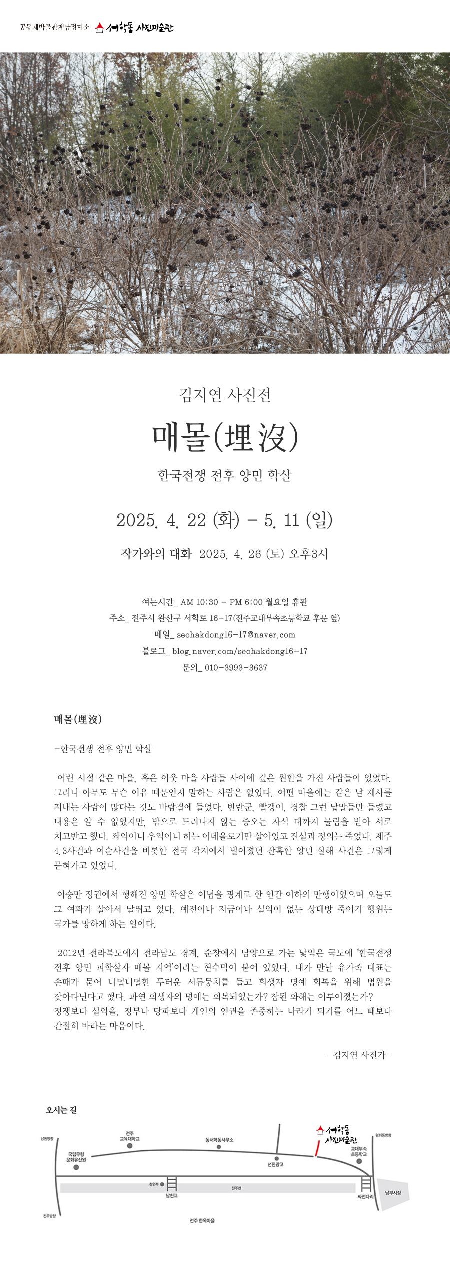 | 전시명 | 김지연 사진전 매몰 한국전쟁 전후 양민 학살 |