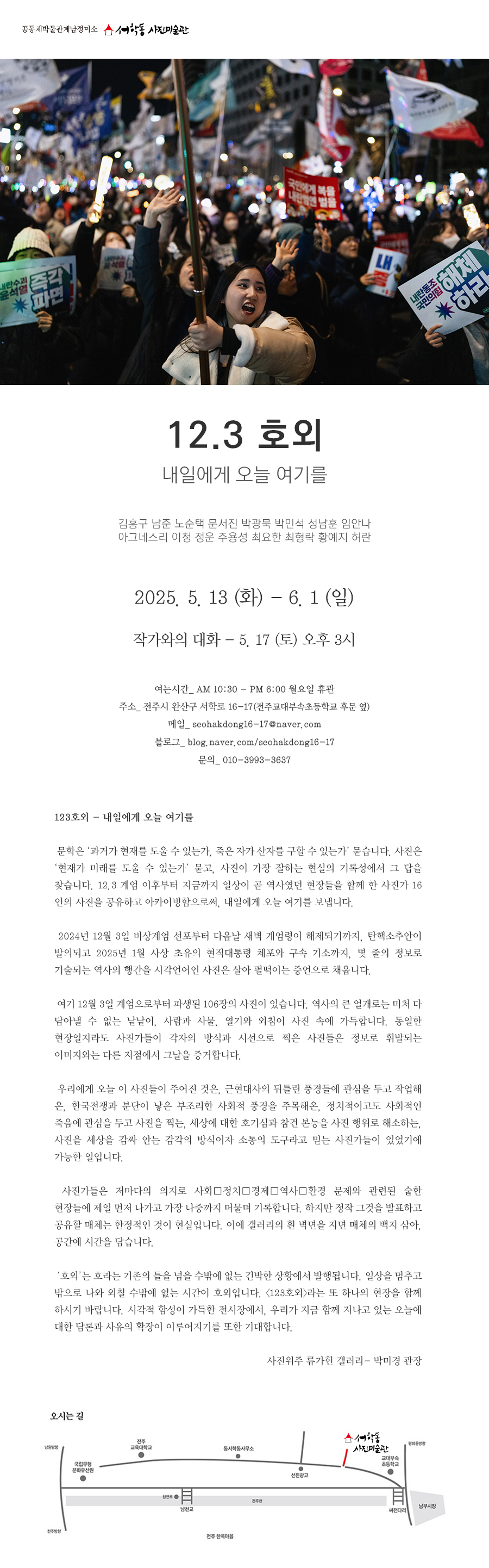 | 전시명 | 서학동사진미술관 12.3 호외 내일에게 오늘 여기를 |