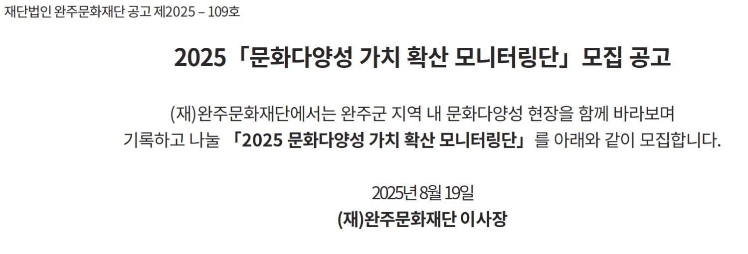 | 공모명 | 2025「문화다양성 가치 확산 모니터링단」모집 공고 |