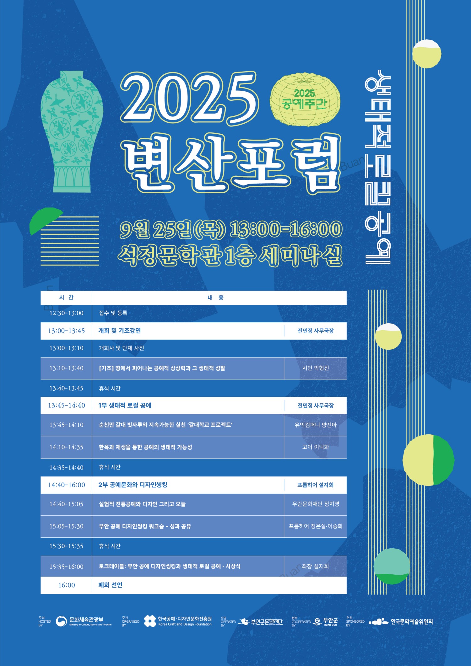 | 공모명 | 2025년 변산포럼「생태적 로컬 공예, 변산포럼」개최 안내 |