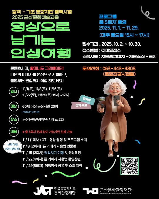 | 공모명 | 영상으로 남기는 인생여행(영상교육) 참여자 모집 안내(변경) |