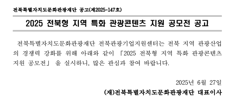 | 공모명 | 2025 전북형 지역 특화 관광콘텐츠 지원 공모전 |