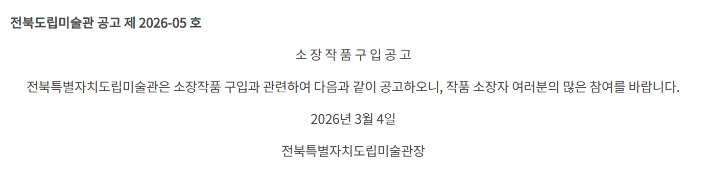 | 공모명 | 2026년 전북특별자치도립미술관 소장작품 구입 공고 |