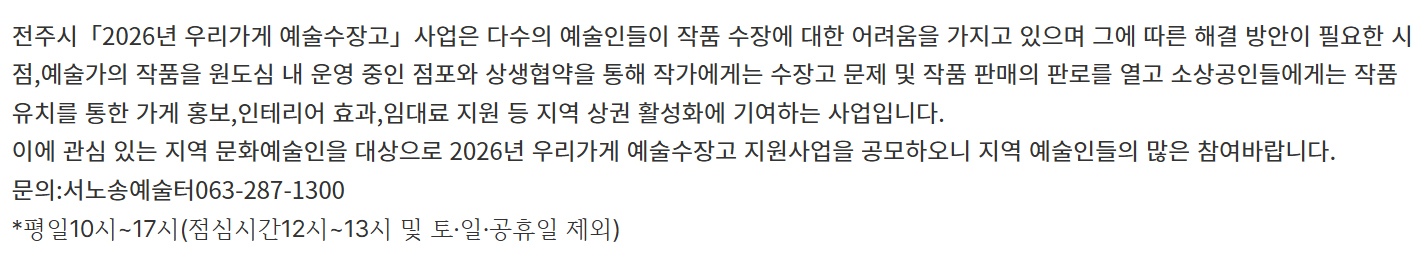 | 공모명 | 「2026년 우리가게 예술수장고」 재공모 |