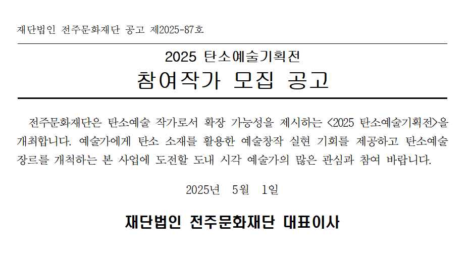 | 공모명 | 2025 탄소예술기획전 참여작가 모집 공고 |